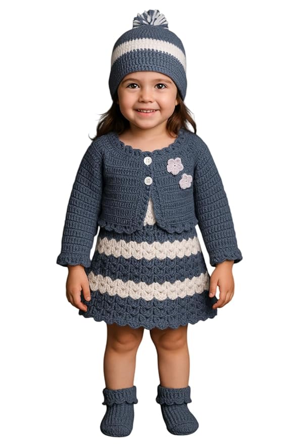 • Type – Frock With Jacket Cap & Shoes, Regular fit and Round neck Fabric – Acrylic Wool. Made of high quality Fabric very soft and comfortable, skin friendly and breathable